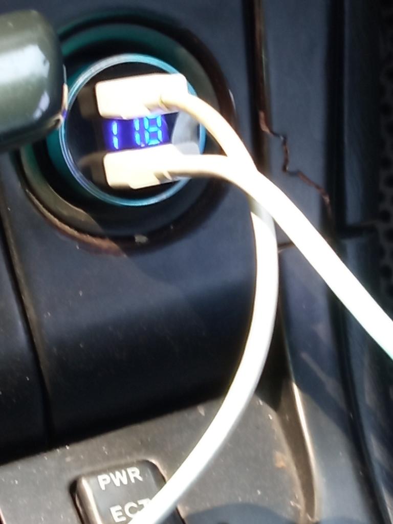 Ein sehr nützliches Gerät, mit dem Sie die Spannung der Bordbatterie überwachen und ihren Zustand nachvollziehen können. Beim Start steigt die Spannung auf 14,3 Volt, was auf einen normalen Betrieb des Generators hinweist. Optional können Sie etwas über USB aufladen