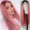Lange gerade braune und goldene Perücke, synthetische Perücken für Frauen, natürlicher Mittelteil, Spitzenperücke, hitzebeständige Faser, natürlich aussehende Perücke