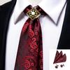 Hi-Tie Weinrote Krawatte für Herren, Krawatte, Einstecktuch, Manschettenknöpfe, Legierung, Krawattenring, Bolo-Krawatte, Boutonniere-Set