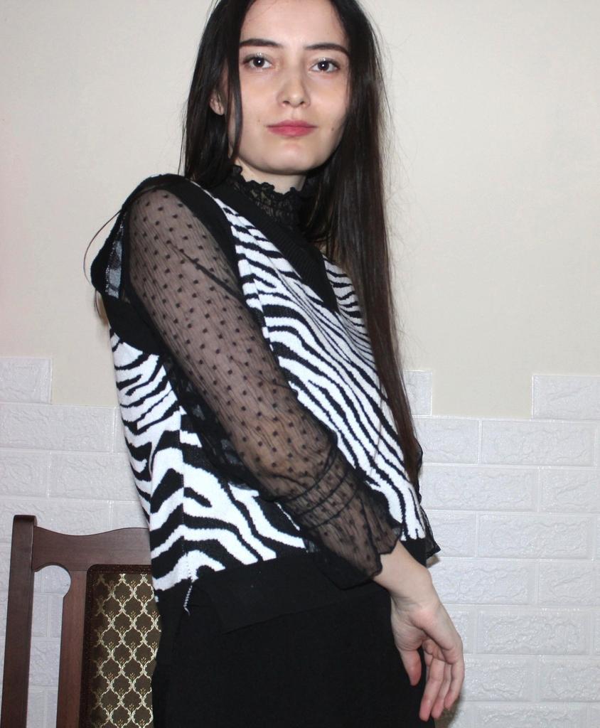Ich bestelle zum zweiten Mal. Vorher habe ich Weiß genommen, jetzt alle 3 Farben. Der Schwarze ist der Kleinste. Und der schwarze Stoff ist weniger weich und dehnbar. Alle Größen passen 42-44. Eine Zunahme der Ärmel um 160 cm ist genau richtig. Sieht toll aus