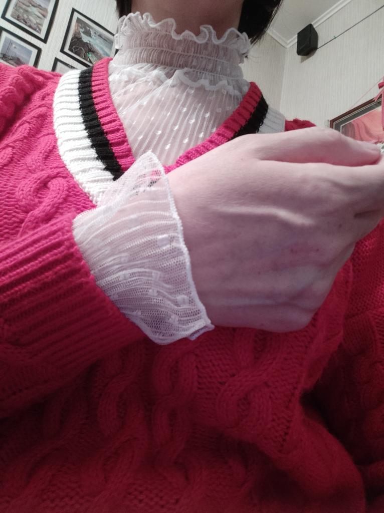 Es ist schön, aber an den Ärmeln etwas kurz. Ich trage Größe S, ich bin 1,68 cm groß