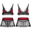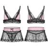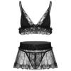 Herren-Crossdress-Dessous mit floraler Spitze, kabelloses BH-Oberteil mit Rock, Tangas, Pyjamas, Nachtwäsche