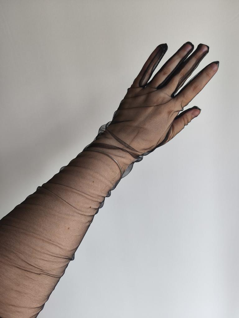 Damen-Tüllhandschuhe, Spitze, voller Finger, Ellenbogen, lange Kleiderhandschuhe, durchscheinend, ultradünn, transparent