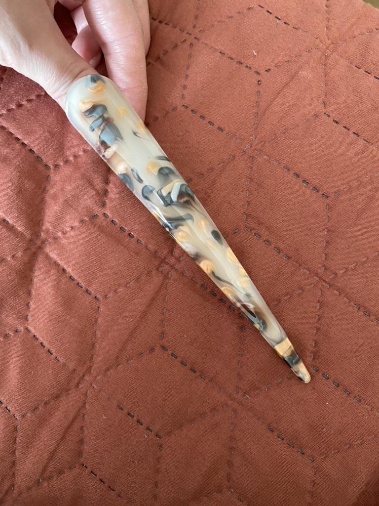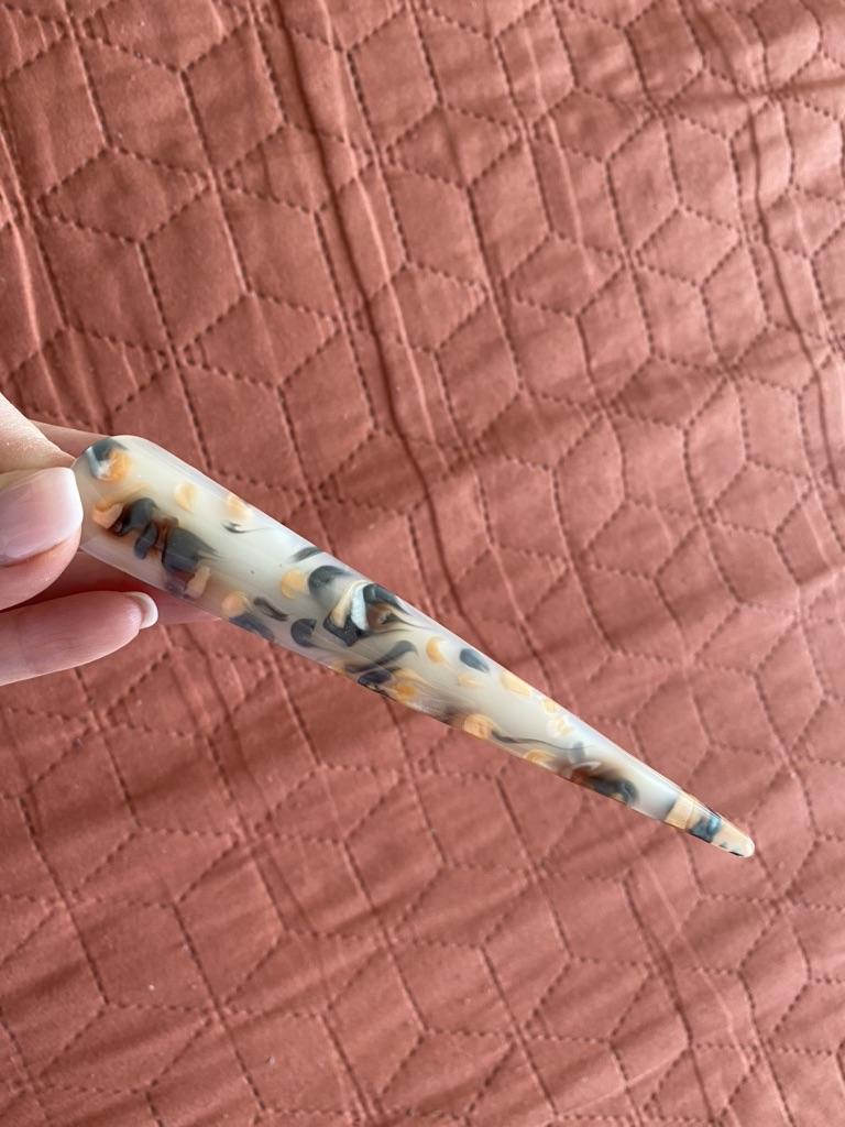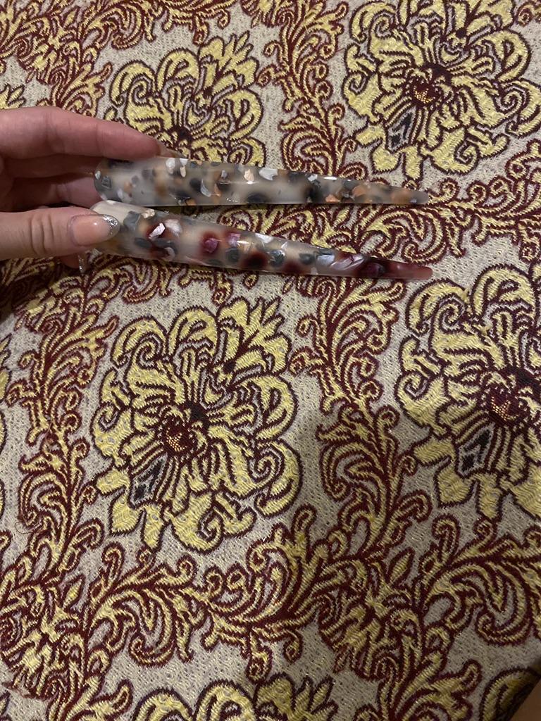 Eine schöne, große Haarnadel. Es erfüllt seine Funktion), da es fast unmöglich ist, solche Produkte auf dem Markt zu finden. Und der Verkäufer hat es auch lustig gemacht, indem er eine kleine Postkarte/Visitenkarte beigelegt hat🤗