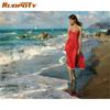 RUOPOTY Rahmenloses Mädchen am Meer DIY Malen nach Zahlen Figur Ölgemälde Wandkunst Leinwandgemälde für Heimdekorationen Diy Geschenkkunst