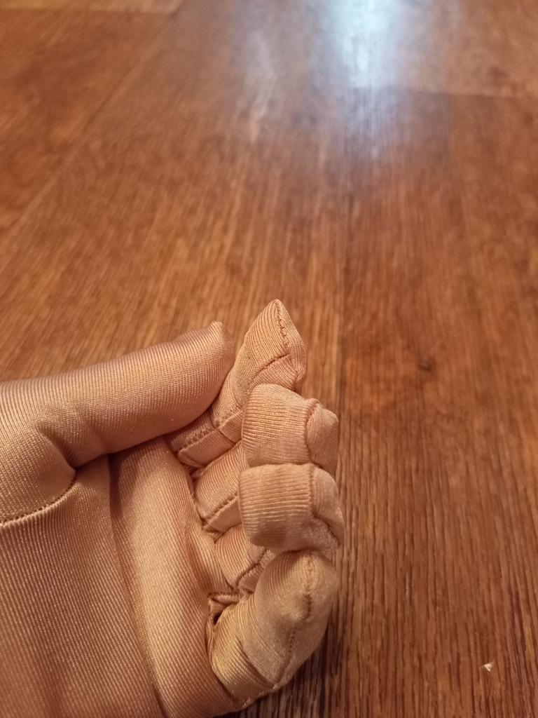 Die Handschuhe sind nicht schlecht, an den Fingern sind sie schrecklich abgerundet, besonders am Zeigefinger