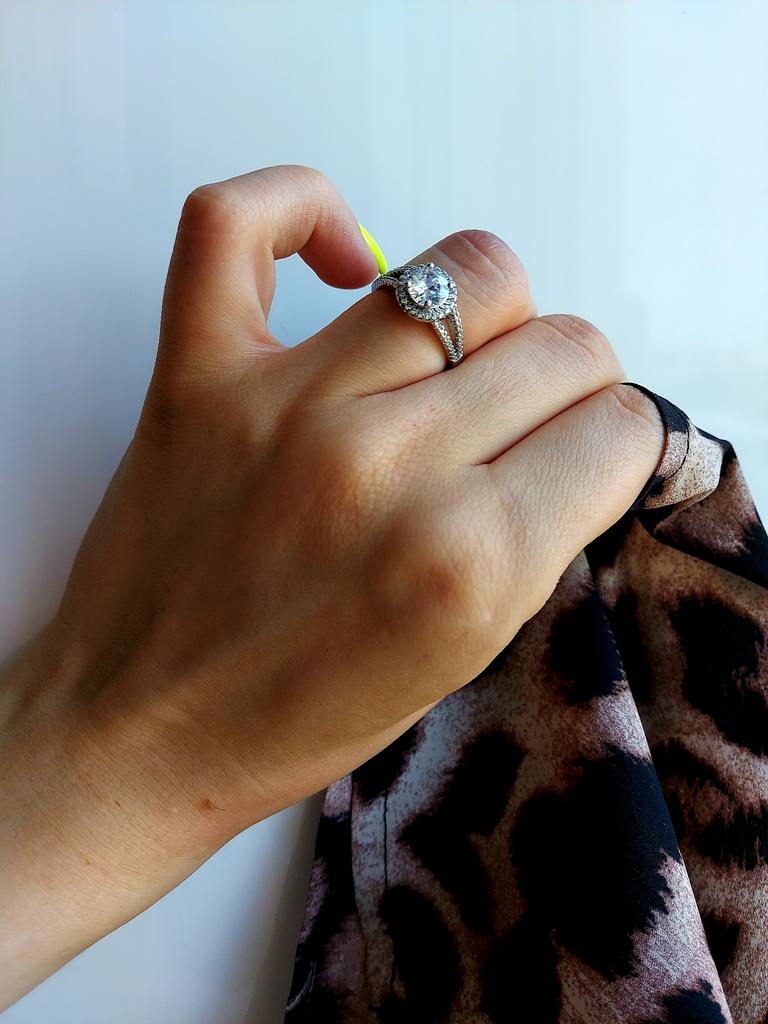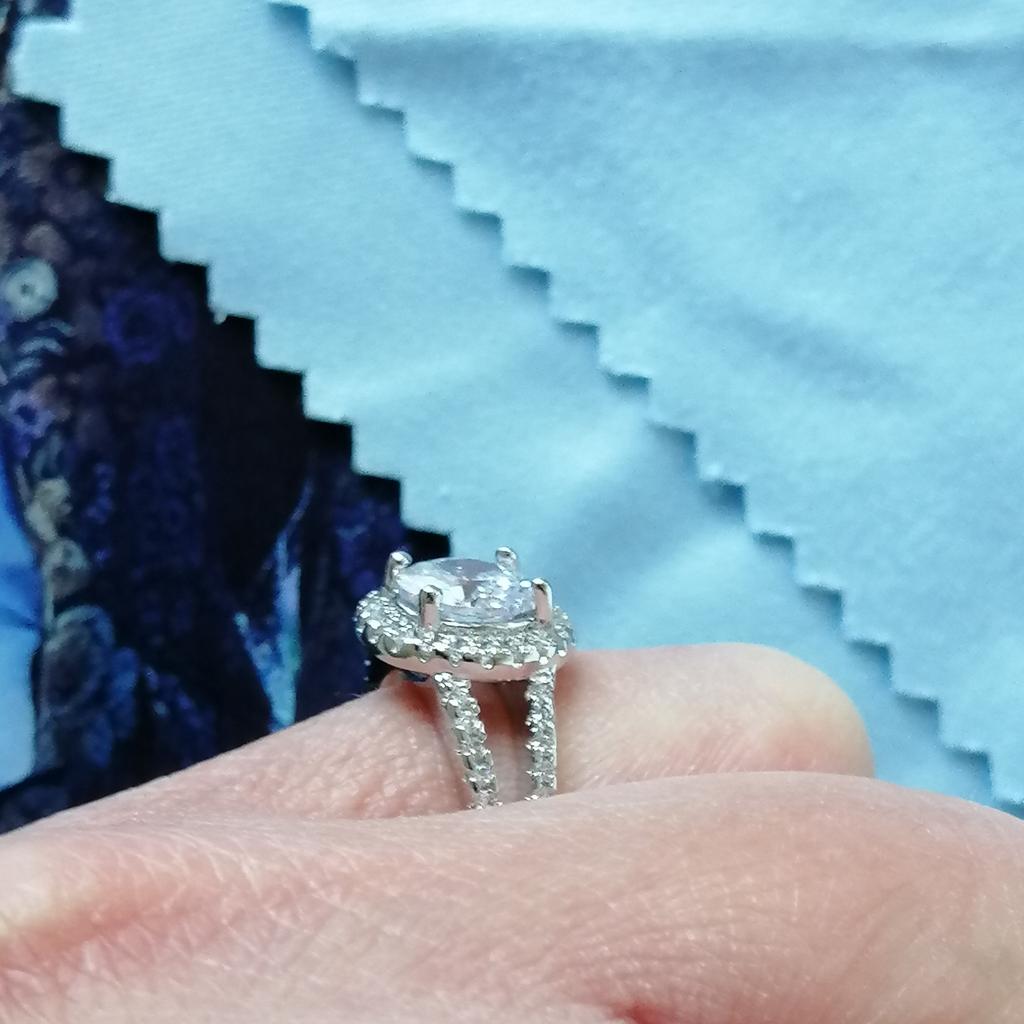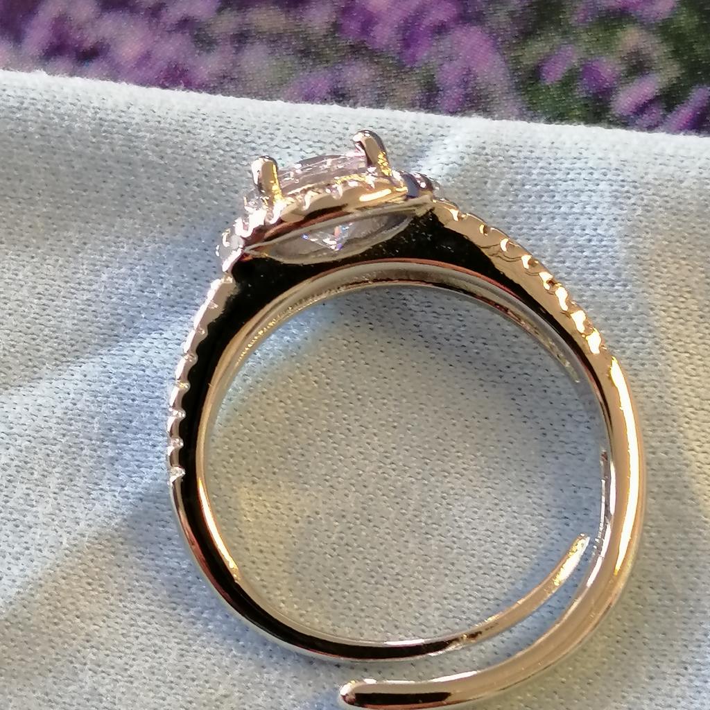 RING Ein Ring mit klassischer Linie. Zentraler Stein und ein Einsatz aus kleinen weißen Zirkonen entlang des Rahmens, um mehr Helligkeit zu verleihen. Der Stein hat einen Brillantschliff und eine lineare Fassung. Ein schick aussehender Ring. Die Farbe des Zirkons ist intensiv und leuchtend mit schillernden Reflexen Der Ring hat keine Mängel. Keine Klebeflecken. Die Steine sind gut gesetzt und fest. Der Rahmen ist eine versilberte Metalllegierung. Innen ist die aufgedruckte Marke zu sehen. Nur in einer Größe erhältlich, da verstellbar. Maße ca. 16,5 mm x 18 mm. Der Ring kam in Italien mit Sendungsverfolgung in 22 Tagen an. Superschneller Versand. Verpackt in einem Luftpolsterumschlag, kam es vollkommen unversehrt an. Verpackung: Karton, Organzabeutel und kleines Tuch zum Reinigen des Rings. Kaufempfehlung 👌