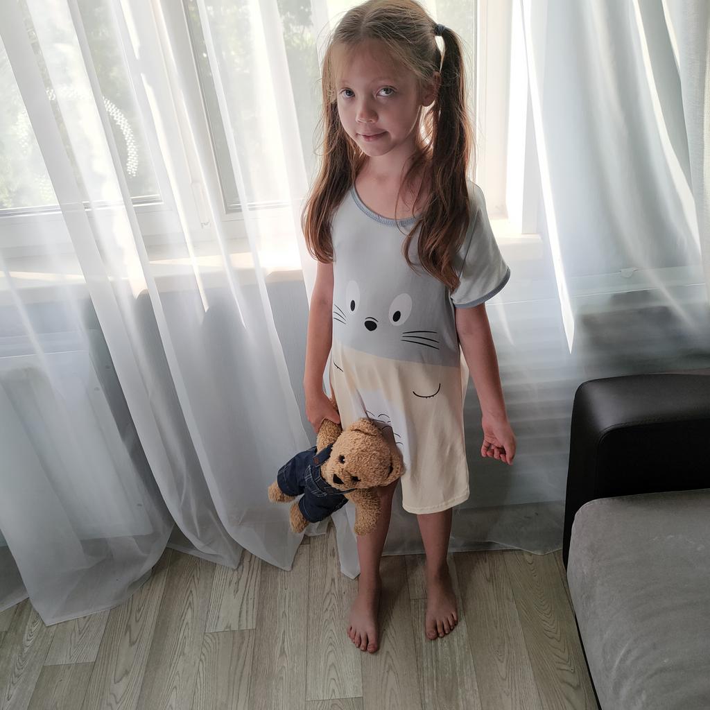 Kinder Mädchen Tier Gedruckt Terno Pyjama Kleid Cartoon Kurzarm Lose Rundhals Sommer