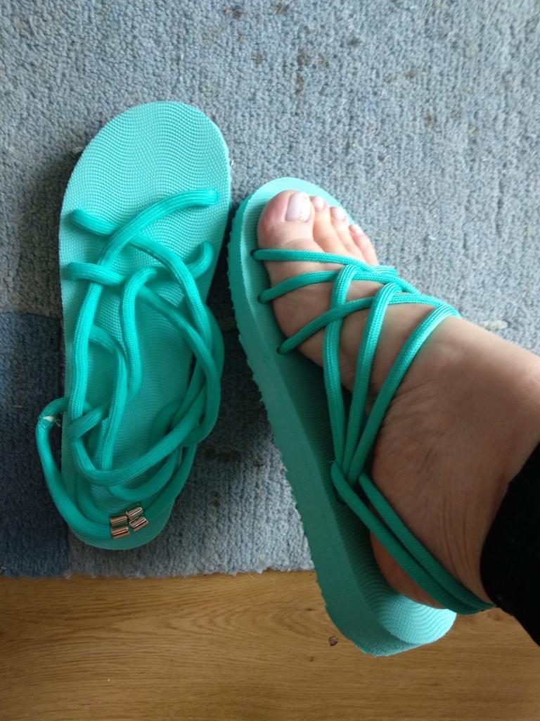 Die Farbe ist hell und schön wie auf den Produktdemonstrationsfotos. Sie sind leicht, bequem und hervorragend für die Sommersaison und besonders für den Strand oder das Schwimmbad geeignet. Ich empfehle sie