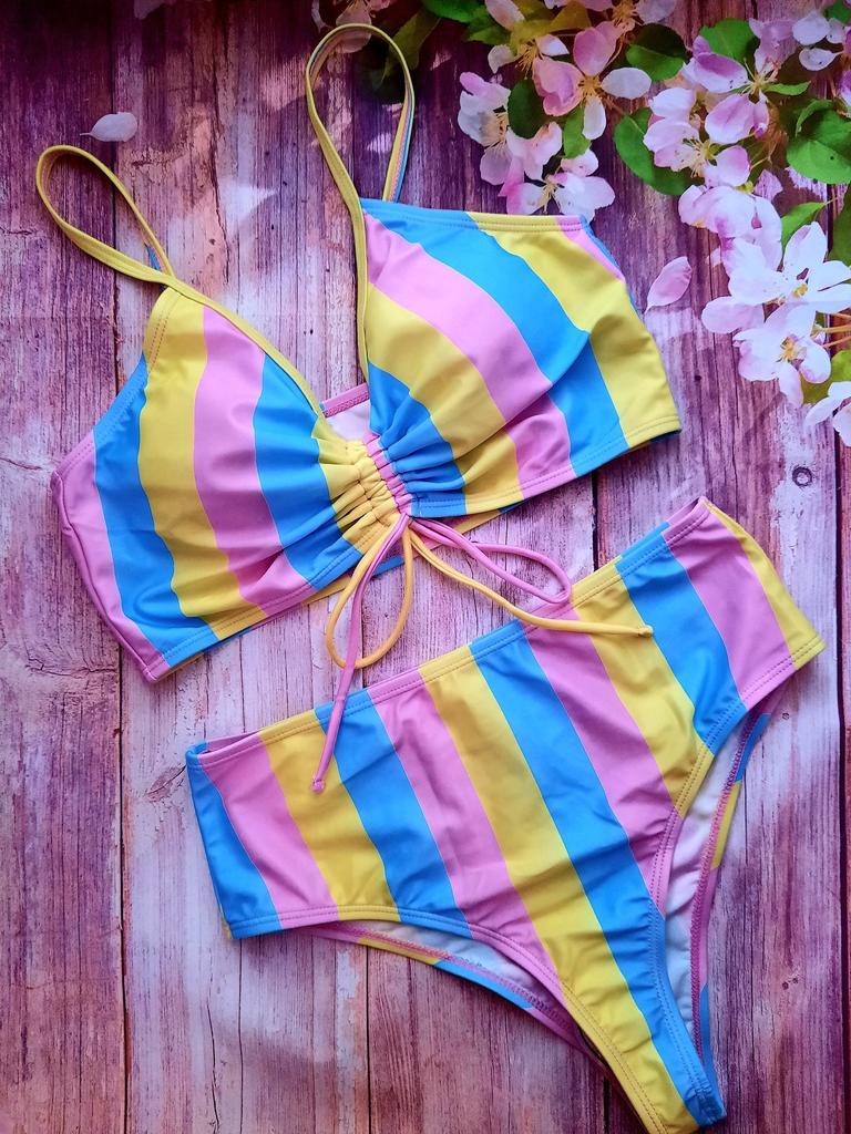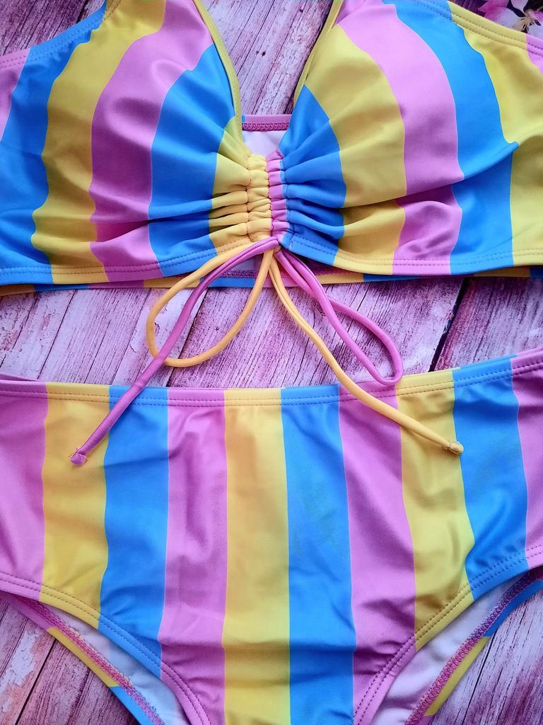 Hohe Taille Bikini Push-Up Frauen Badeanzug Weibliche Regenbogen Bademode Sexy Bikini Set Schwimmen Anzug Bademode Biquini Badeanzug