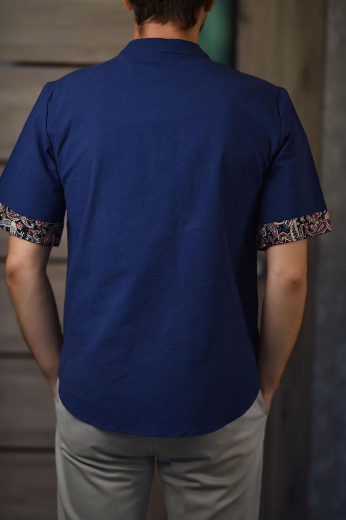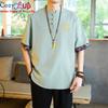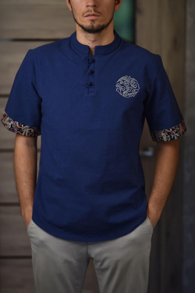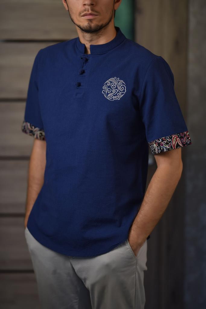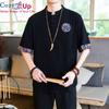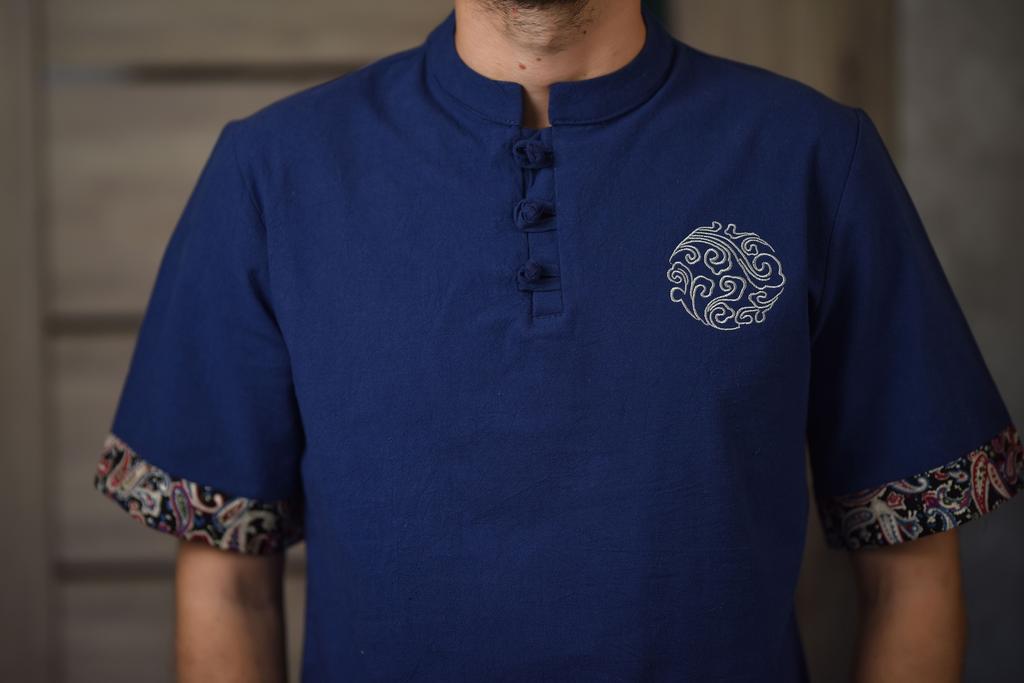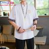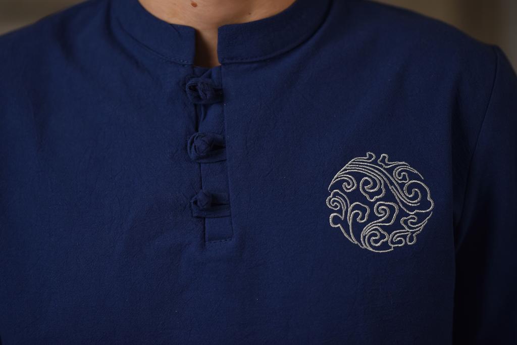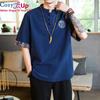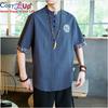 Cozy Up Chinesischer Stil 1/2 Ärmel Freizeithemd Herren Slim Stehkragen Stickerei Baumwolle und Leinen