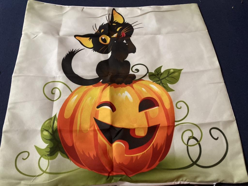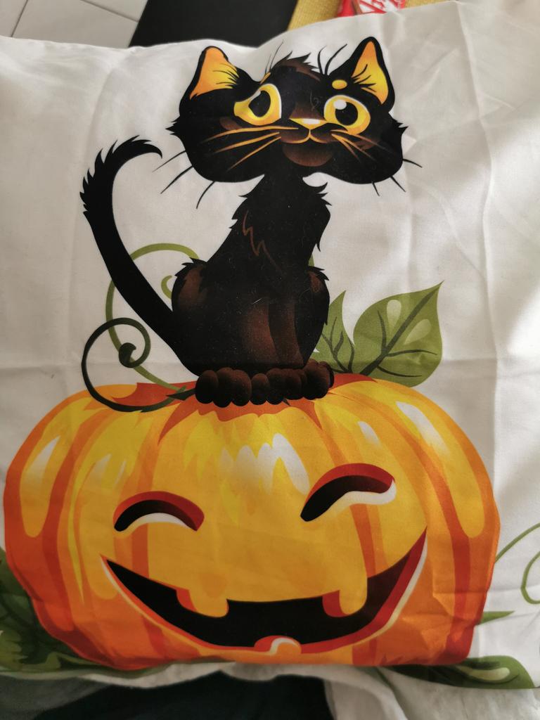 Schönes süßes Katzenkissen mit Halloween Motiv. Fester Stoff, gut verarbeitet sehr zu empfehlen