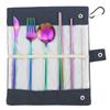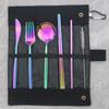 Rose Aufbewahrungstasche, tragbares Geschirr-Set, Edelstahl-Set, Messer, Gabel, Löffel, Stäbchen, Stroh, Reisen, Camping, Grillen, Geschirr-Set