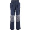 - Gesäßtaschen mit inneren Holstern und zwei Gesäßtaschen, Zollstocktasche und Hammerschlaufe, Gürtelschlaufen, verstärkter Ferseneinsatz am Saum, um ein Ausfransen zu verhindern, zwei kontrastierende Kniepolstertaschen, seitliche Beintasche mit Druckknöpfen und Handyfach.