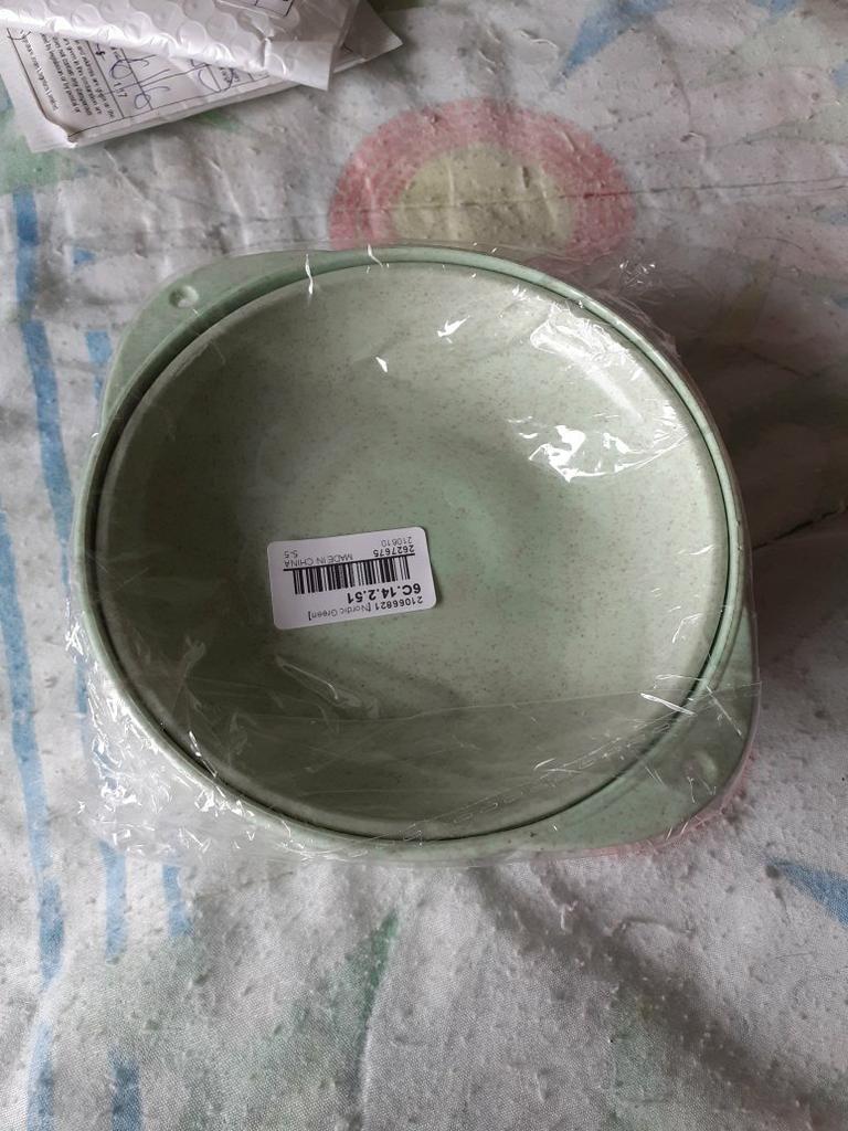 Niedliche Schüssel. Der Kunststoff ist hart. Nur sehr klein 650 ml. Hat einen unangenehmen chemischen Geruch. Ich hoffe, er verflüchtigt sich/wäscht sich aus.