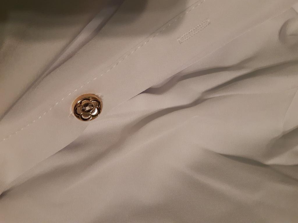 Bluse wie auf dem Foto. Passt der Größe entsprechend. Laternenärmel mit kleinen Rüschen oben. Blumenmuster auf den Knöpfen.