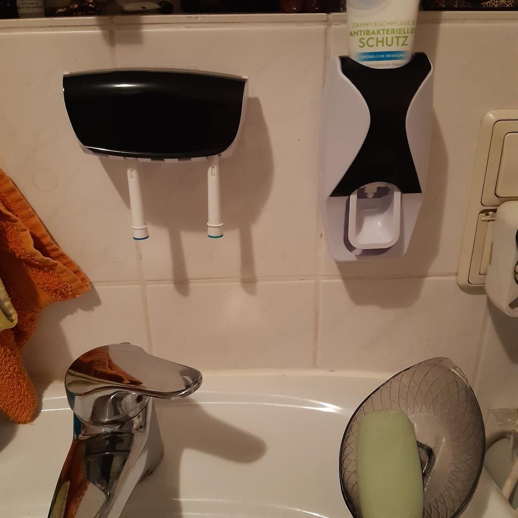 Wir haben bereits einen Zahnpastaspender deswegen musste ein 2. her. Dieses mal mit Halterung für die 5 Zahnbürsten.