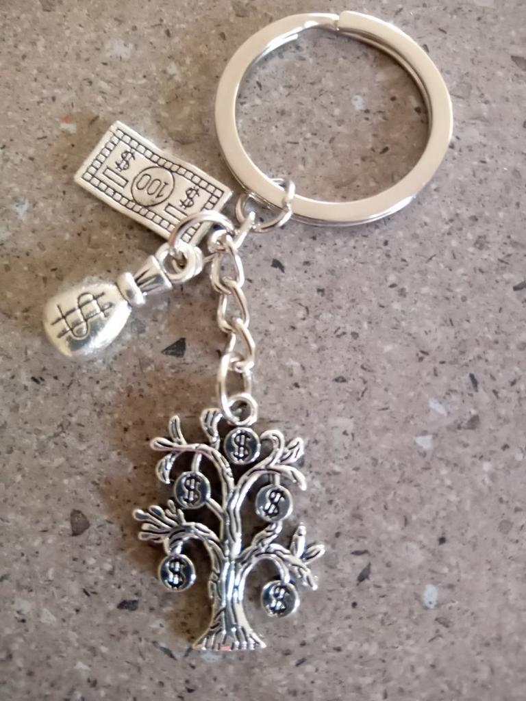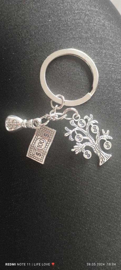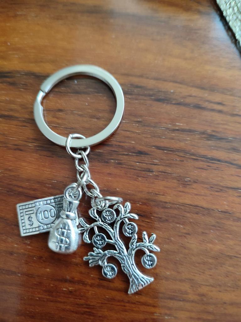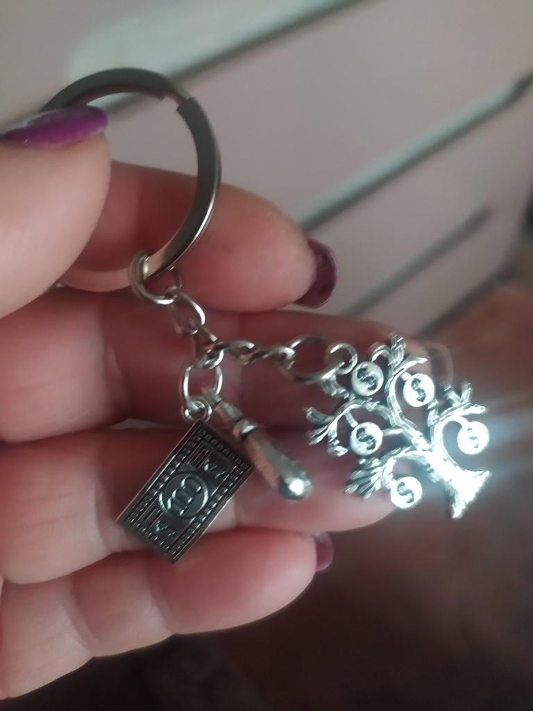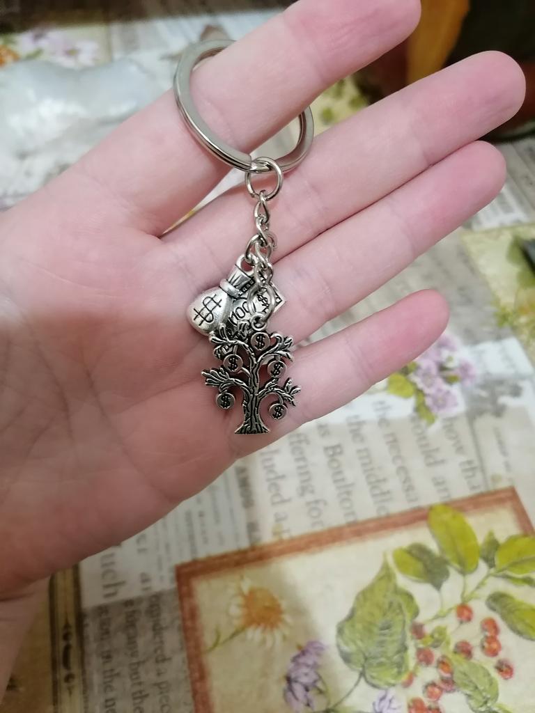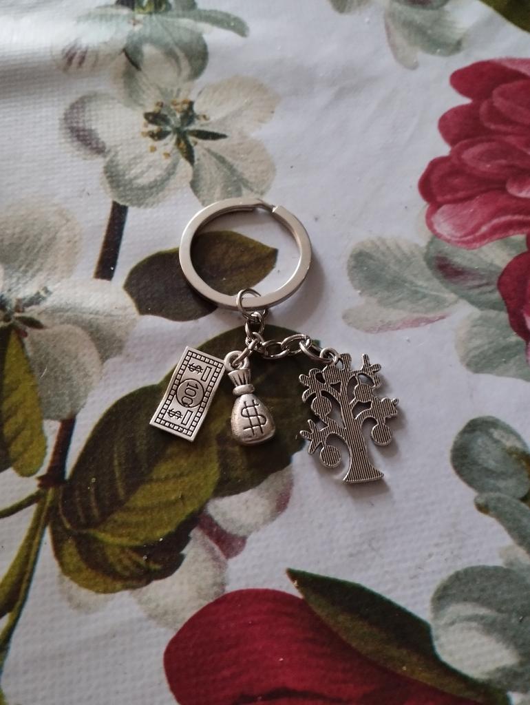 Schlüsselanhänger mit sehr schönen Anhängern. Ich hänge sie an die Patchwork-Taschen, die ich anfertige. Er kam in weniger als einem Monat in Spanien an 🇪🇸. Ich habe viele gekauft, ich empfehle ihn. Dies ist ein Baum des Lebens, 100 Euro und eine Tüte davon Geld