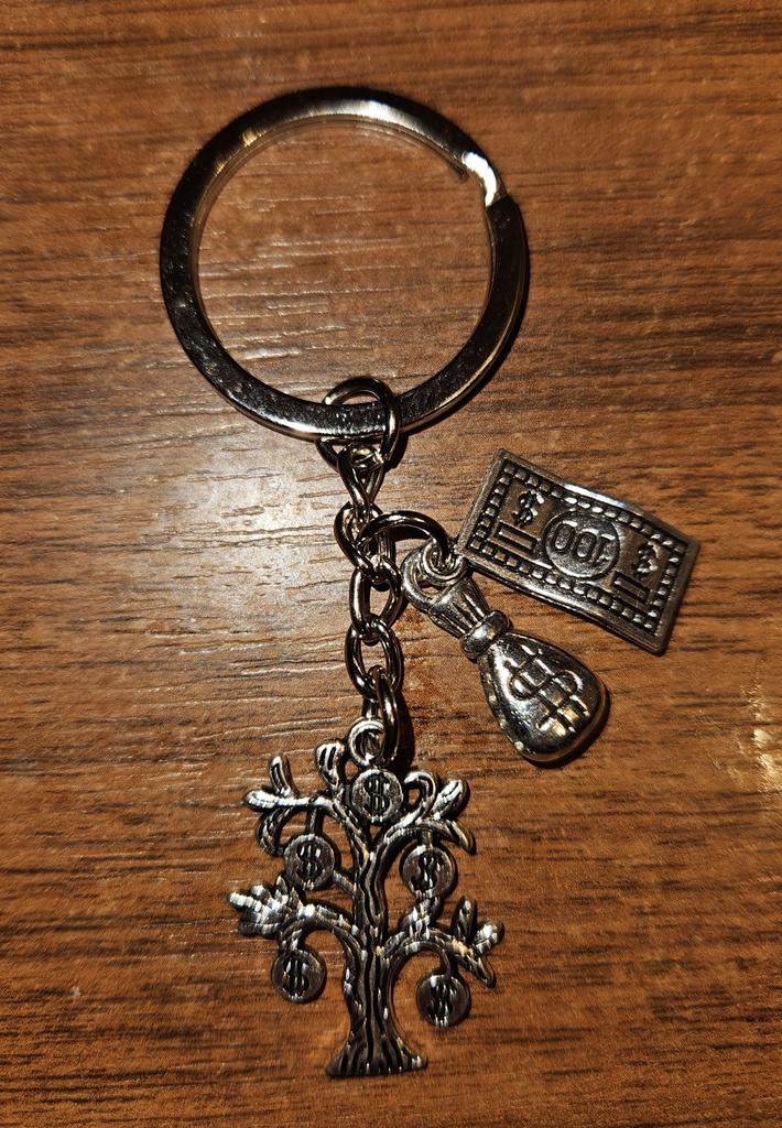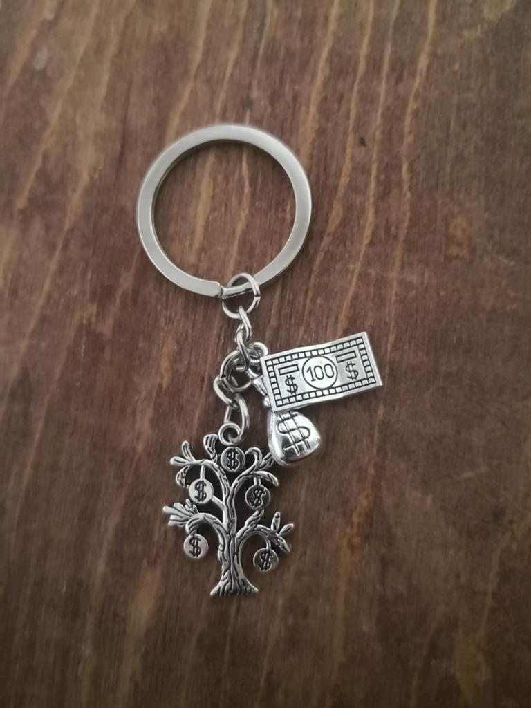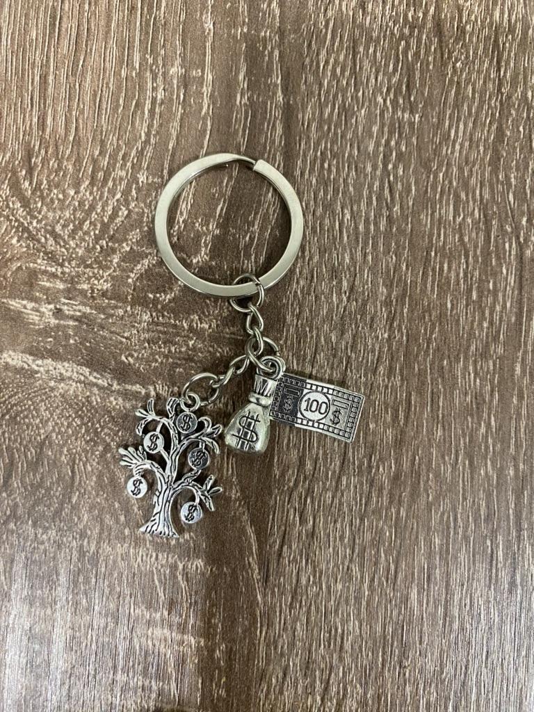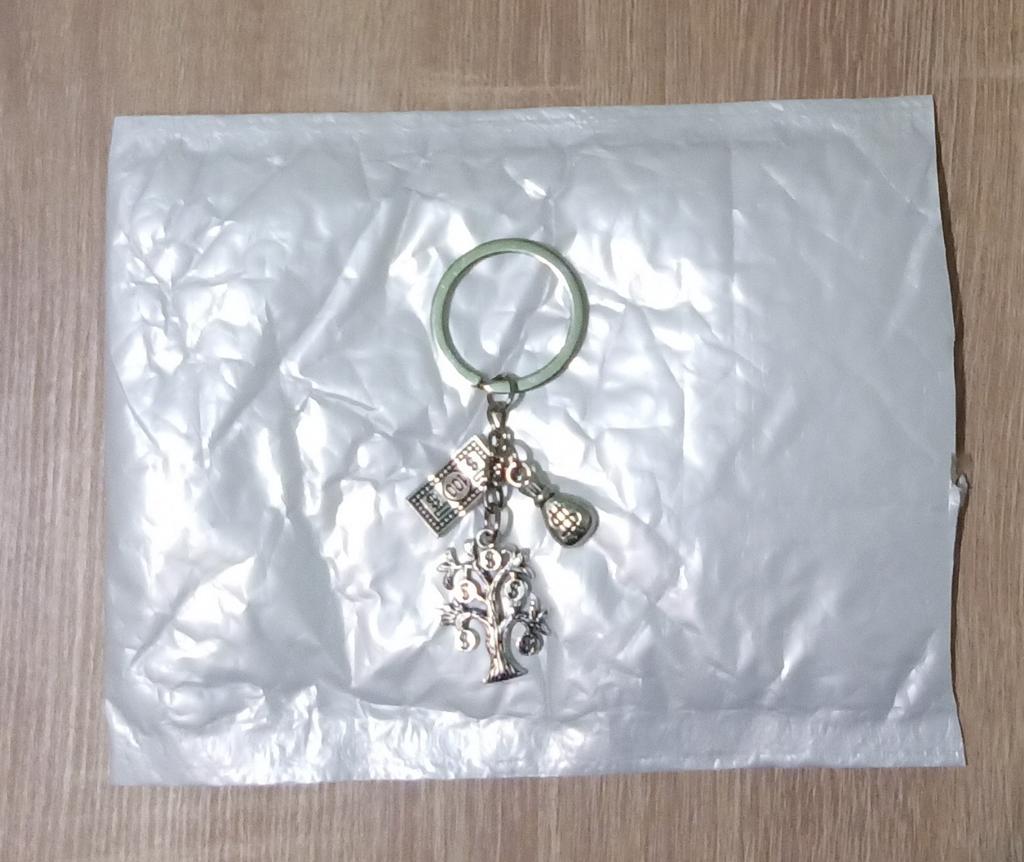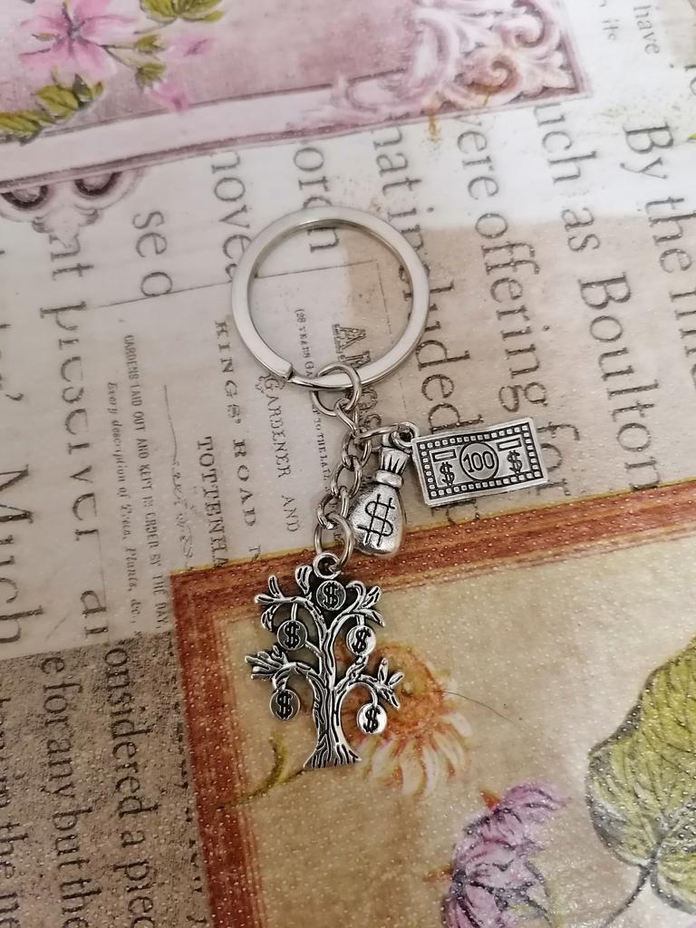 Schlüsselanhänger mit sehr schönen Anhängern. Ich hänge sie an die Patchwork-Taschen, die ich anfertige. Er kam in weniger als einem Monat in Spanien an 🇪🇸. Ich habe viele gekauft, ich empfehle ihn. Dies ist ein Baum des Lebens, 100 Euro und eine Tüte davon Geld