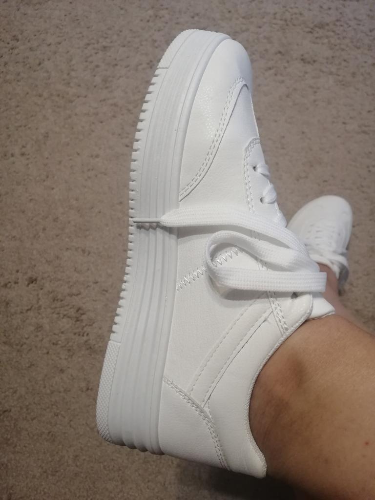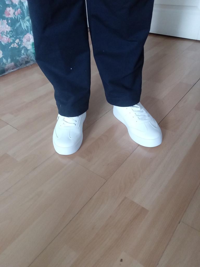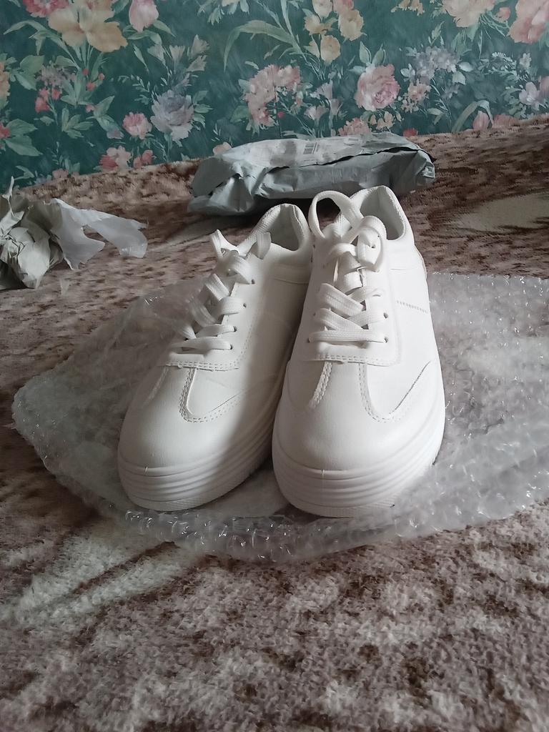 Die Turnschuhe sind einfach wunderbar, die Größentabelle stimmt, die Schuhe waren so lala verpackt, sie waren in einen Staubwedel gewickelt und Papier war hineingestopft. Während des Transports gab es Falten an den Turnschuhen, die jedoch schnell entfernt wurden. Es roch nicht. Ich bin begeistert von den Schuhen.
