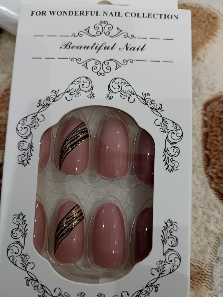 24 Stück Mandel-Diagonal-Goldfaden, Lotuswurzel, Rosa, zum Tragen von Nägeln, fertiger gefälschter Nagel, Nagelpflaster, wasserfest