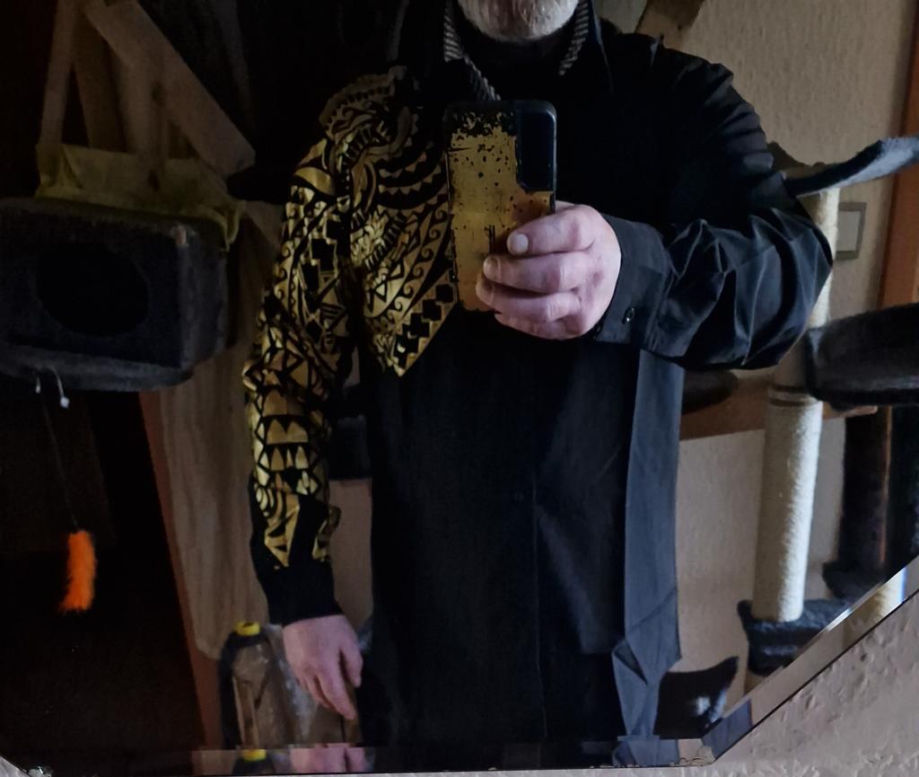 Gold bedrucktes Hemd, bedrucktes Totem-Langarmshirt, afrikanisches Party-Shirt