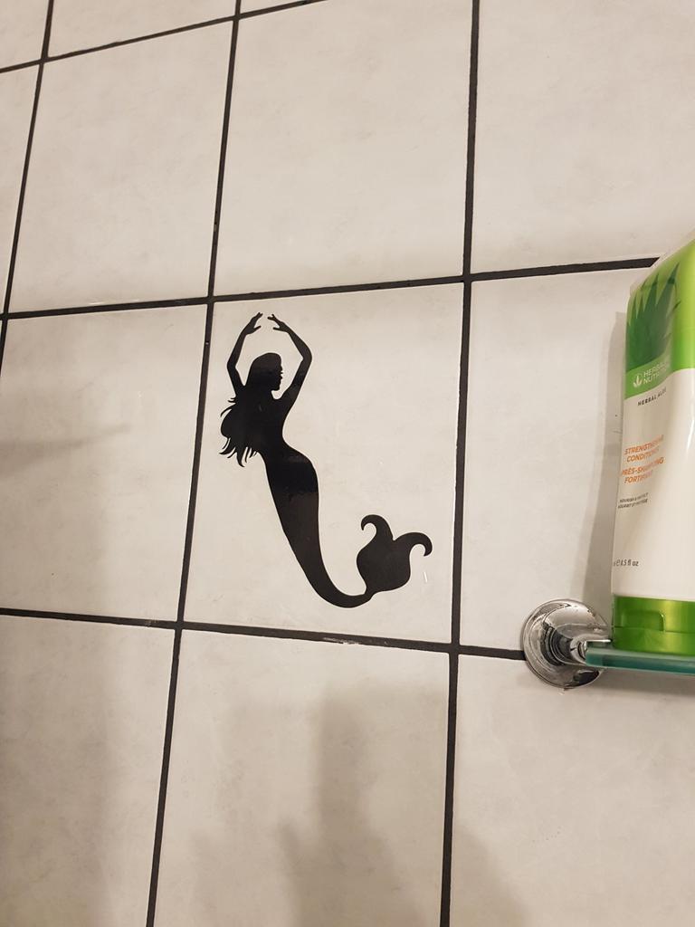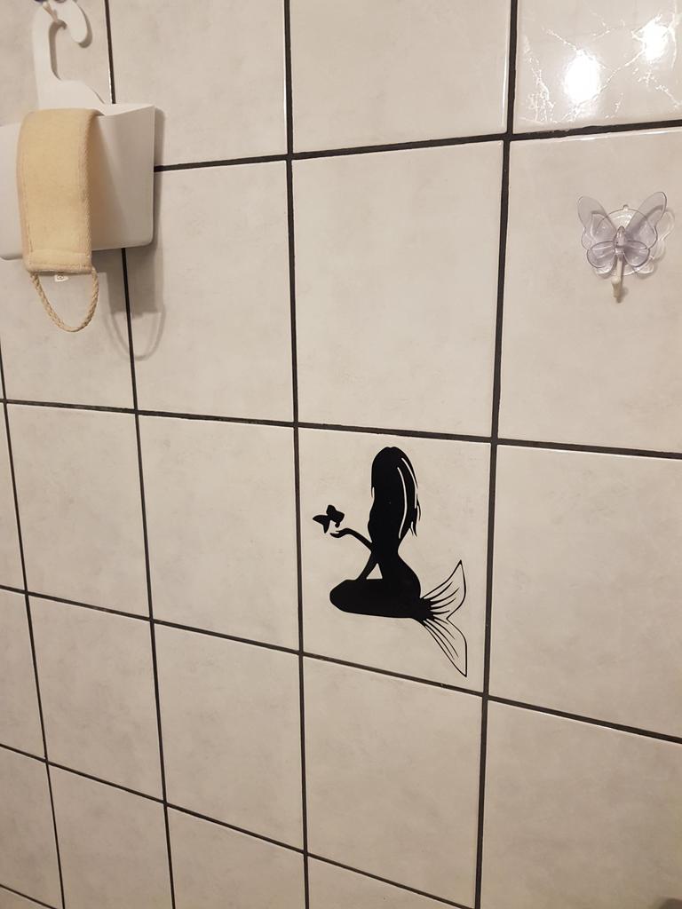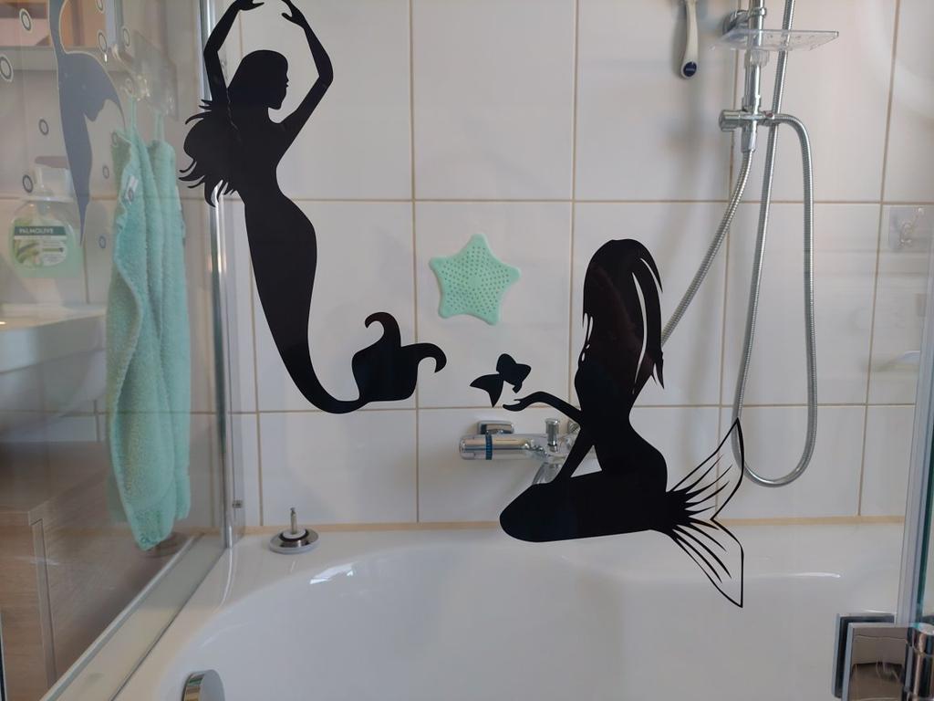 Zwei tanzende Meerjungfrauen-Badezimmer-Glaswandaufkleber, 24 x 25,6 cm