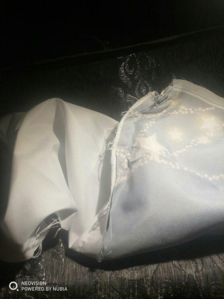 Druck nur auf einer Seite. Sieht nicht aus wie auf dem Foto. Sehr leichter Stoff