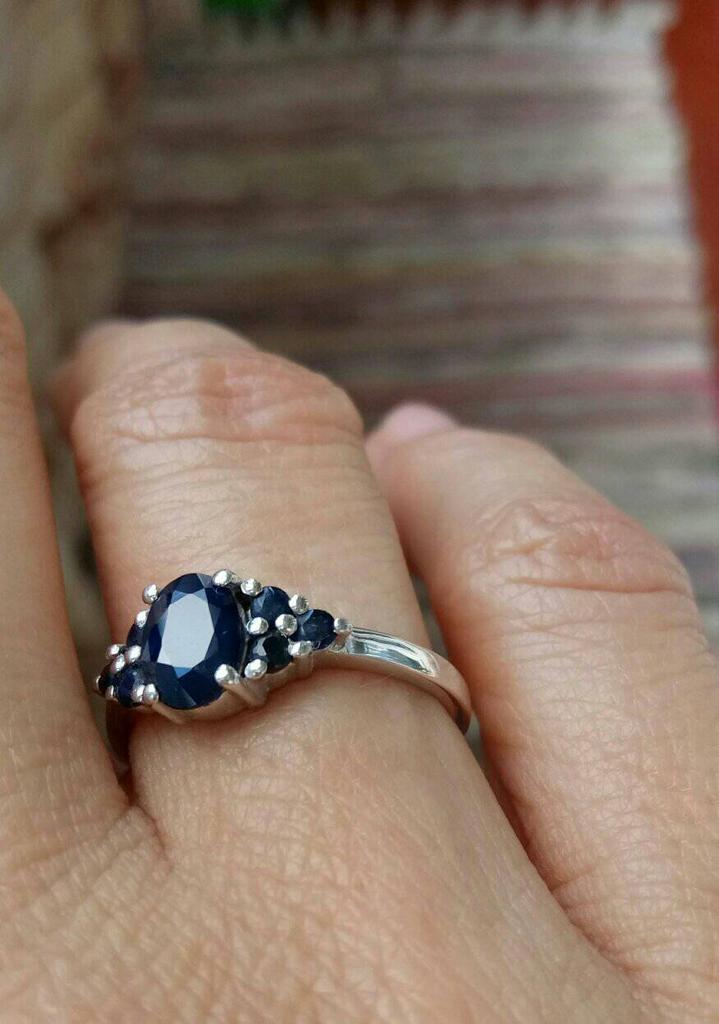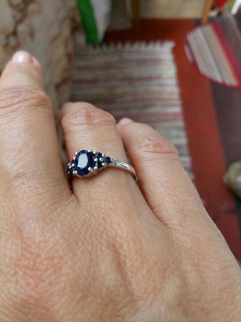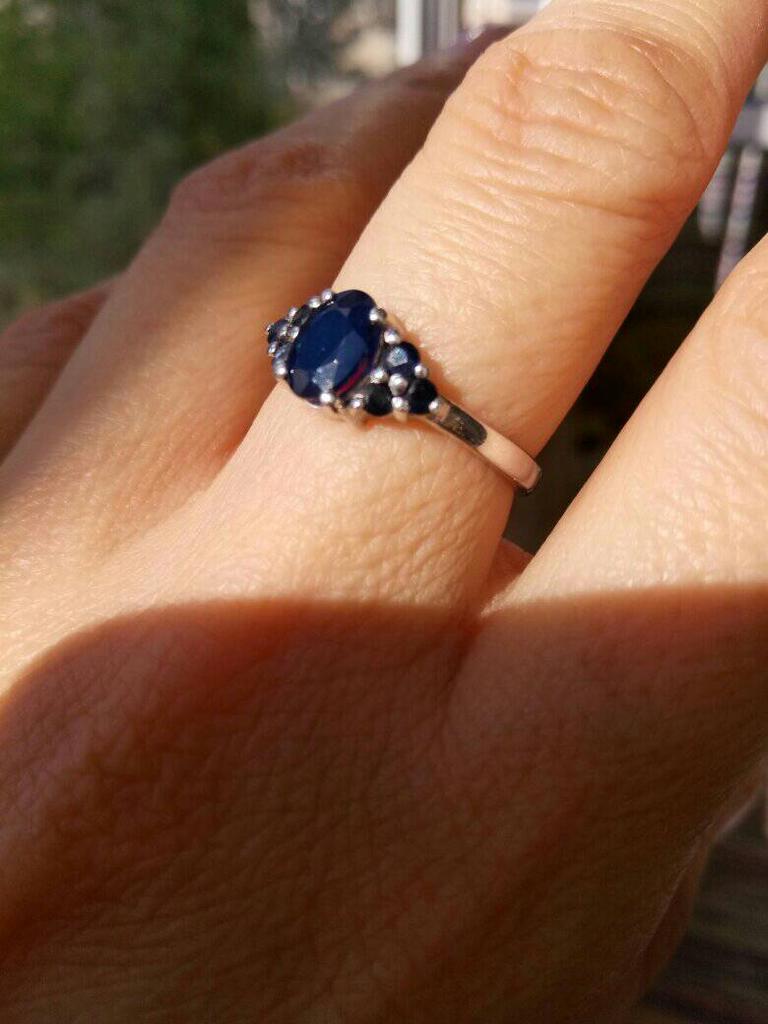 серебряное кольцо с натуральным сапфиром 1.175ct, вес изделия 2,46 гр