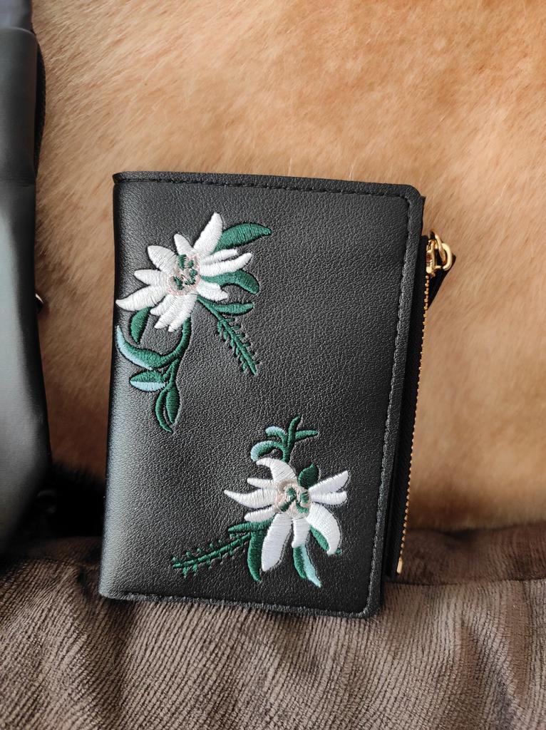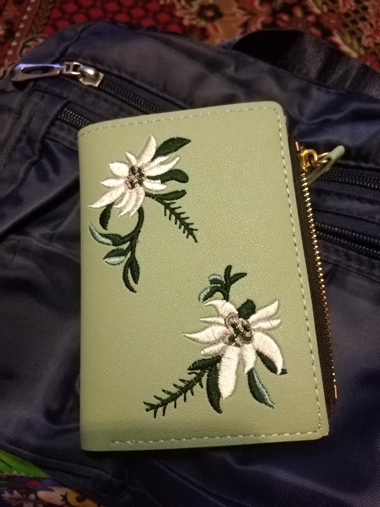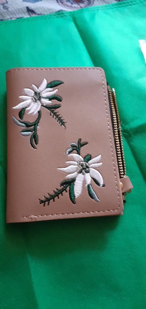 Sehr schöne Brieftasche, die Stickerei ist wunderschön, sie verleiht ihr eine ideale Note und bietet sowohl Platz für Münzen (Geldbörse) als auch für Karten und Geldscheine, zwei in einem, großartig, sehr zufrieden! Es hat weniger als 3 Wochen gedauert, bis ich ankam, sehr schnell, danke 😉😊