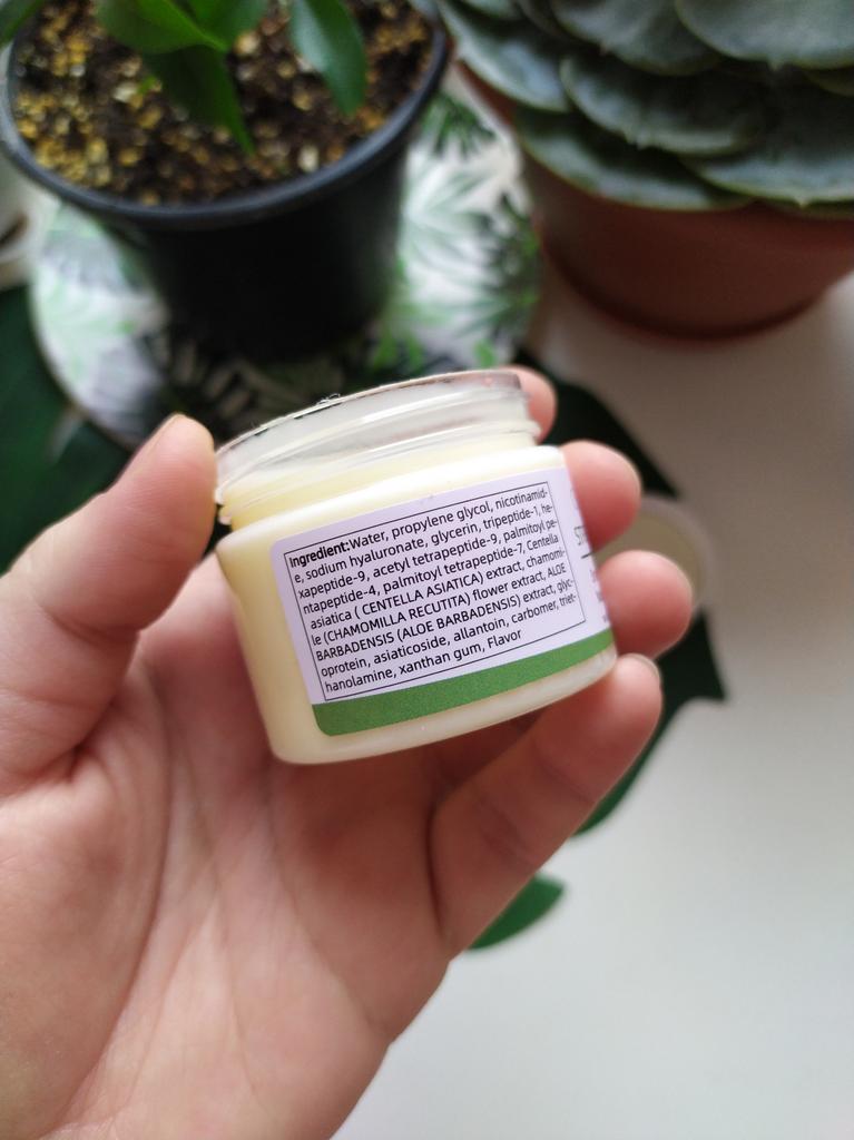 water, propylene glycol, sodium hyaluronate, glycerin, chlorphenesin, asiaticoside, asiatic acid, allantoin, card perme, triethanolamine, xanthan gum,
