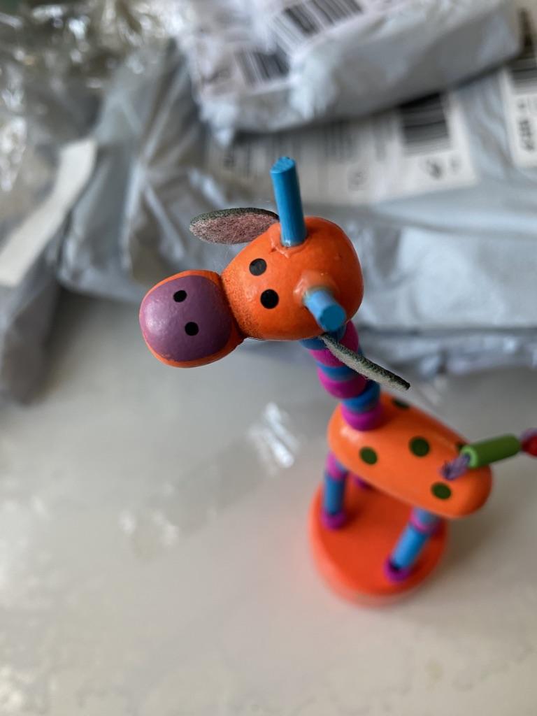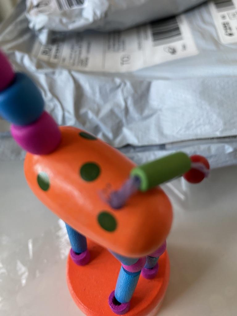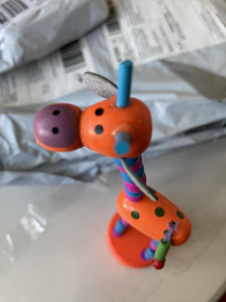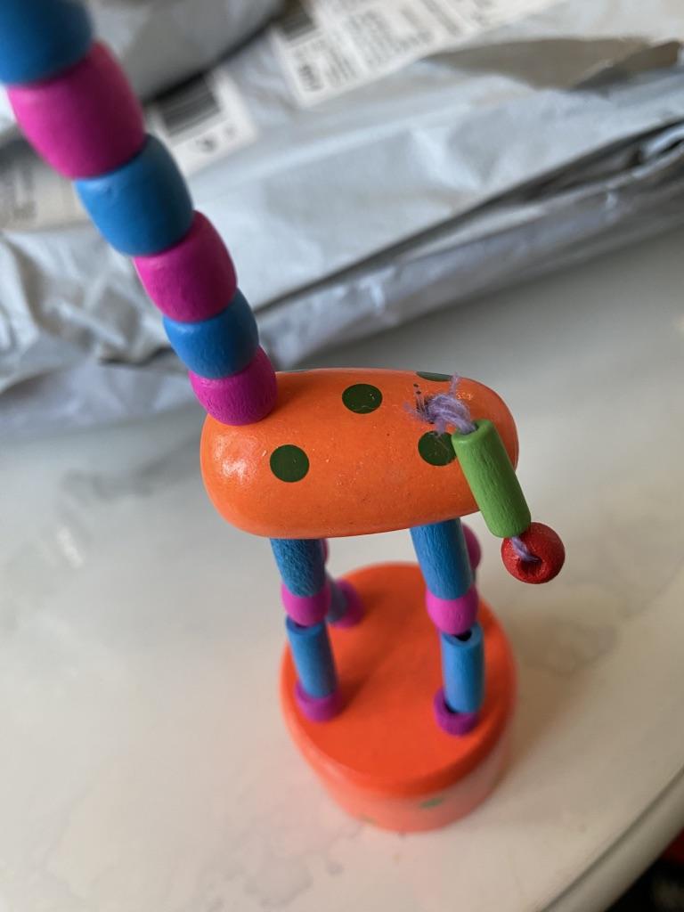 Das Spielzeug ist bunt, aus Holz. Aber es hat enttäuscht, dass das Holz nicht ganz ist