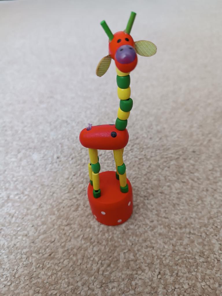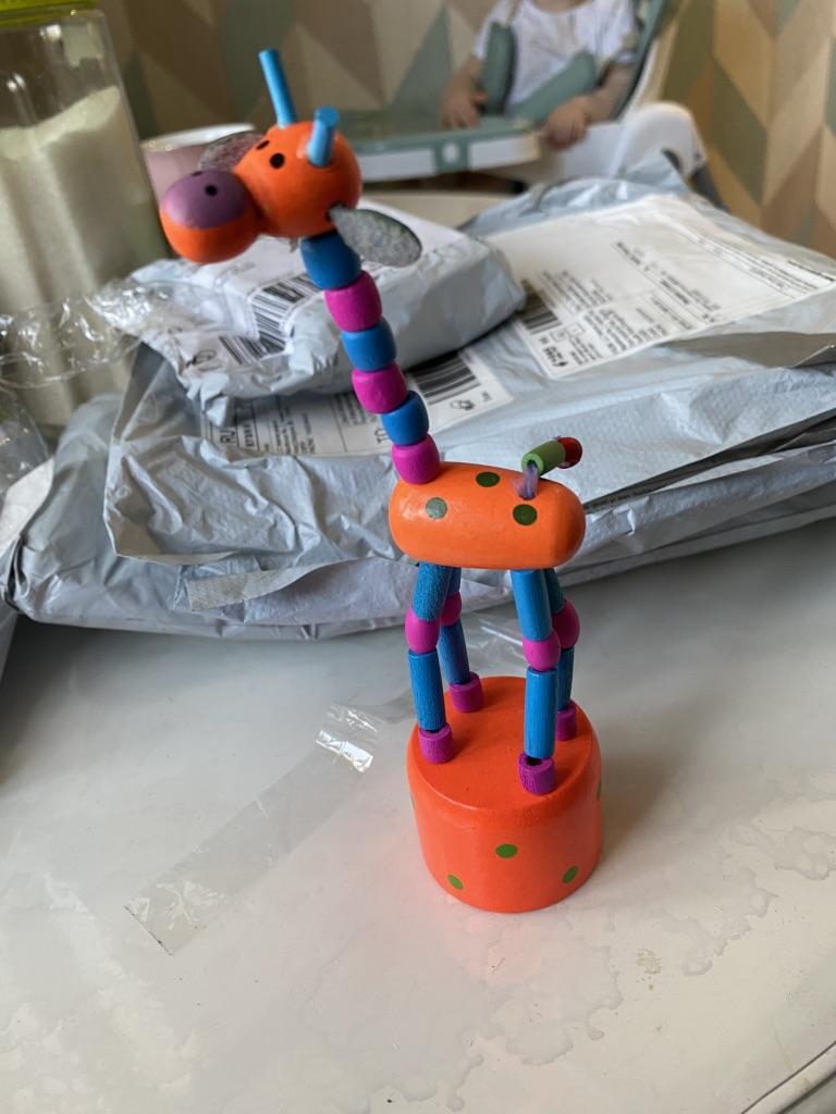 Während wir spielen))) sind alle glücklich. Und ein 8-jähriges und ein 1,9-jähriges Baby. Sie haben es nicht kaputt gemacht. Krutitsky-Giraffe. Man drückt von unten, es klappt