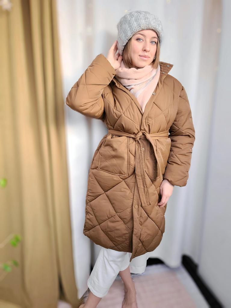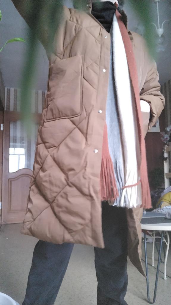 Perfekter Wintermantel 😍❄️🏔️🌡️✔️ Ich liebe es!!!!!!!!!!!!!! Es sieht sehr modern aus. Die Jacke wird mit Gürtel geliefert, kann aber auch ohne Gürtel getragen werden. Das Tragen mit Gürtel betont Ihre Kurven. Erhältlich in Kaffeefarbe und Abricot (Beige). Es sind 2 Größen verfügbar. Ich trage Größe M mit den Maßen 84-66-89cm und bin 169cm groß. Es passt gut! Ich habe noch Platz für einen Zeckenpullover. Die Ärmel sind genau richtig. Wenn Sie größer sind als ich, werden sie kurz sein. Guter dicker Stoff und genug Füllung für die Winterzeit. Für mich sieht es von außen wie wasserdichter Stoff aus. Es kam in nur 15 Tagen zu Hause an. Verfolgt! SUPER!! Kaufen Sie es, Sie werden es nicht bereuen 💗😘🌹