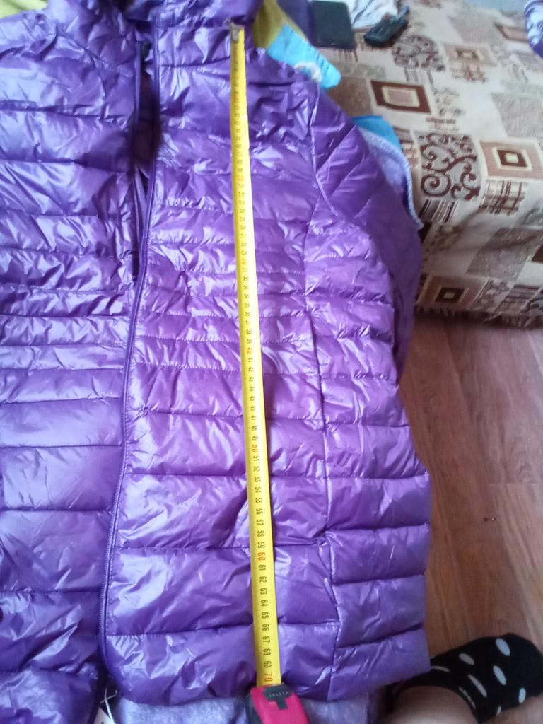 Eine wunderschöne Jacke, länger, die die Oberschenkel bedeckt. Die Farbe ist wunderbar - Champagner. Größe 7XL entspricht Ukrainisch. 56 Größe. Berechnen Sie die Länge des Ärmels für eine Körpergröße von 158-162. Er hat schräge Taschen mit Schloss. Die Kapuze ist stilvoll und ordentlich. Generell ist die Jacke stylisch. Ordentlich verpackt, ich habe mich nicht daran erinnert. Zufrieden mit dem Kauf. Lieferung 3 Wochen.