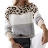 Klassischer, locker sitzender All-Match-Strickpullover mit Leopardenmuster und Rundhalsausschnitt für den Büropullover