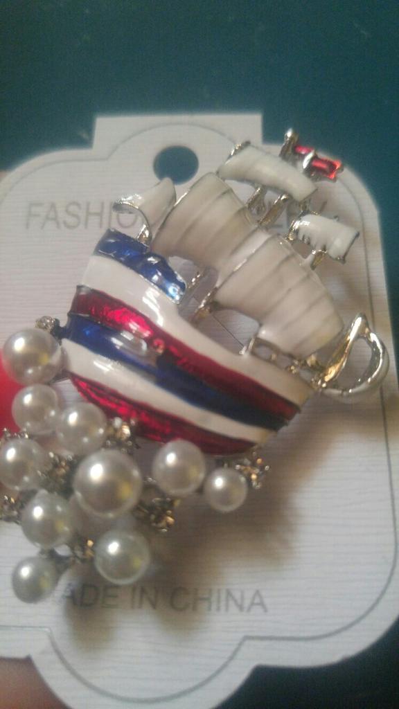 Segelboot-Brosche mit Kunstperle und Strass eingelegt, Damen-Kleid-Hemd-Abzeichen