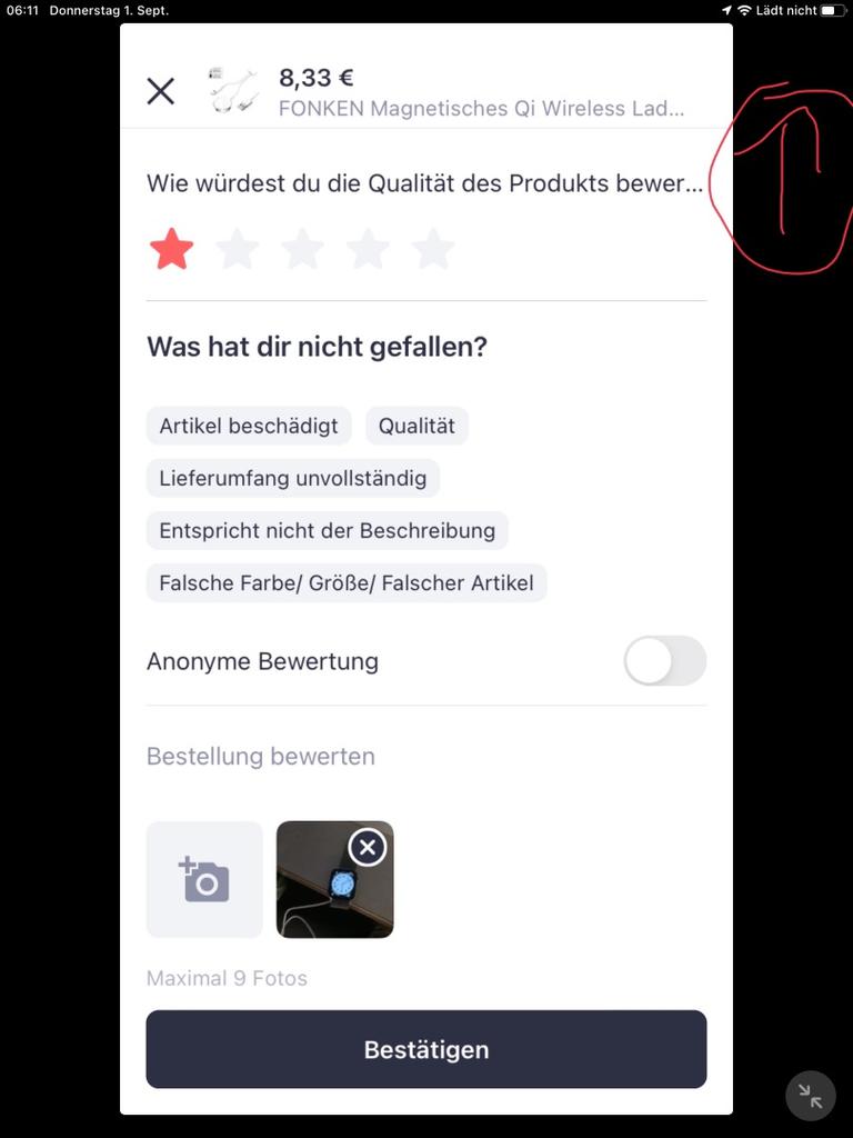 Es ist heute angekommen am 25.10.2022. So ein sehr praktisches neues Kabel für IPhone 6 und WATCH gleichzeitig zu laden. Update die Seite für zur Apple Watch ⌚️ zu laden, funktioniert nicht/ hat Wackelkontakt!