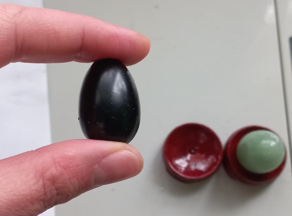 Die Eier sind aus Naturstein, aber sehr klein, kleiner als ein Ständer, nicht darauf stehen, sondern auf einem Fass liegen. Für die Innendekoration, so lala. Für die Arbeit mit Chakren eignen sie sich aber durchaus