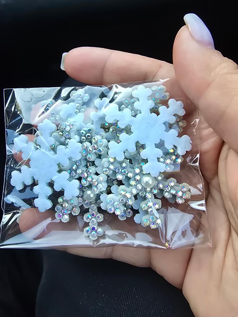 10 Stück 35 mm Weihnachts-Schneeflocken-Strass-Patches für Scrapbooking, Perlen-Applikationen, DIY-Aufnäher, Dekor-Zubehör