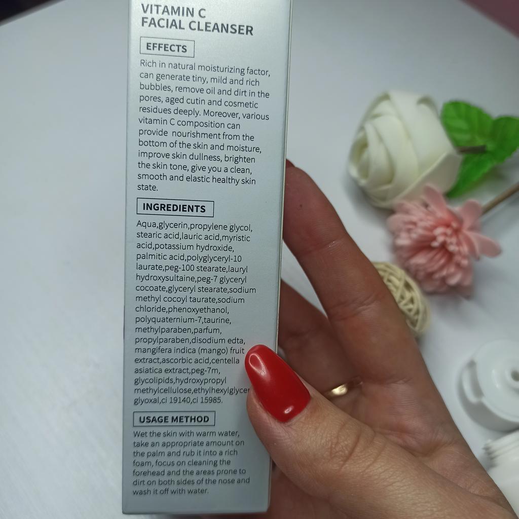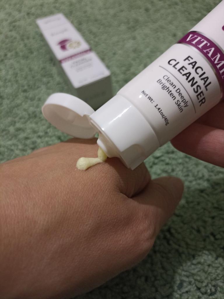 GESICHTSREINIGER MIT VITAMIN C🌟☀️🌟☀️🌟 Dieser Gesichtsreiniger hilft 🍀-tief reinigen, 🍀- hellt die Haut auf 🎀Vollgepackt mit natürlichem Feuchtigkeitsfaktor kann dieser Reiniger einen sanften Schaum erzeugen. 🎀Der Reiniger hilft, Öl und Schmutz in den Poren, gealtertes Cutin und kosmetische Rückstände gründlich zu entfernen. 🎀Das Produkt ist reich an Vitamin C, das die Haut nicht nur nährt, sondern auch strahlender macht, da sie sauber, glatt und elastisch bleibt. 💚VERWENDUNG Ich habe den Reiniger mit warmem Wasser auf die nasse Haut aufgetragen. Ich habe einmassiert und, wie oben gesagt, hat sich ein leichter Schaum gebildet. Ich konzentrierte mich auf die Reinigung der Stirn und der schmutzanfälligen Bereiche auf beiden Seiten der Nase. Dann habe ich gründlich gespült. Ich kann Ihnen sagen, dass die Haut wirklich sauber war !!!! 💚Eine weitere sehr wichtige Sache, ich habe kein starkes Brennen in meinen Augen gespürt, wie es mir bei vielen schaumigen Reinigungsmitteln passiert. 💚DIMENSION Die Tube enthält 40 g FAZIT👍👍👍👍 Endlich habe ich das gesuchte Produkt gefunden !! Ich schminke mich jeden Tag und habe im Laufe der Jahre erkannt, dass die Reinigung der Haut ein grundlegender Schritt für die Schönheit des Gesichts ist. Ich empfehle es !!!