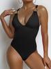 Women's Swimsuit Black Deep V Sexy High Waist One Piece Swimsuit