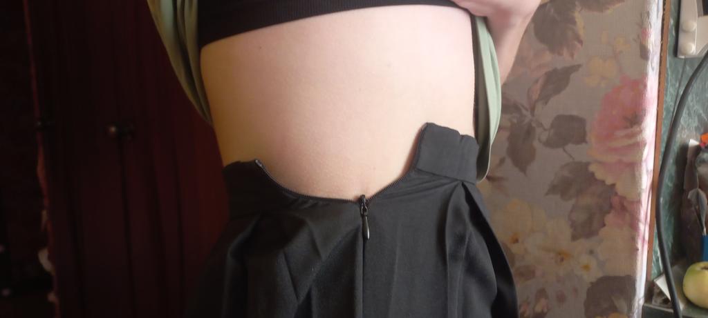 Drückt meinen Magen ein wenig zusammen. Der Verschluss ist nicht zuverlässig, der Knopf am Ende reicht nicht aus, um den Rock zu halten. Ich habe Angst, dass der Reißverschluss mit der Zeit schwächer wird und nicht mehr hält.