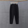 Johnature Frauen Baumwolle Leinen Casual Hosen Einfarbig Elastische Taille Gesteppte Warme Hosen Winter Vintage Dicke Hosen