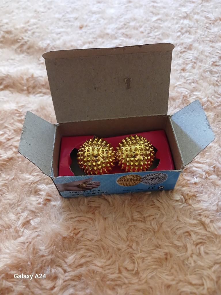 Schön verpackt in einer Box. Sehr interessant und magnetisiert gut. Es eignet sich sehr gut zur Handmassage.