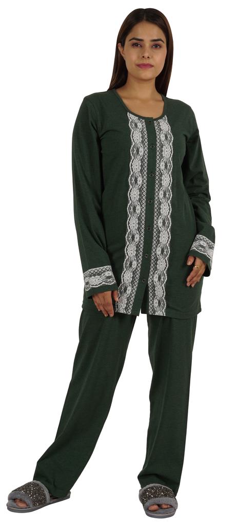 * Features: Comfortable, solid color, round neck, full sleeve, lacework details, button-down front placket, elastic waist Pajama.