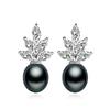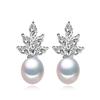 LSOOYH Natürliche Süßwasserperlen Ohrringe Mode Party Zirkonia Blatt Ohrstecker Für Frauen Perlenschmuck Hochzeit Braut Ohrringe