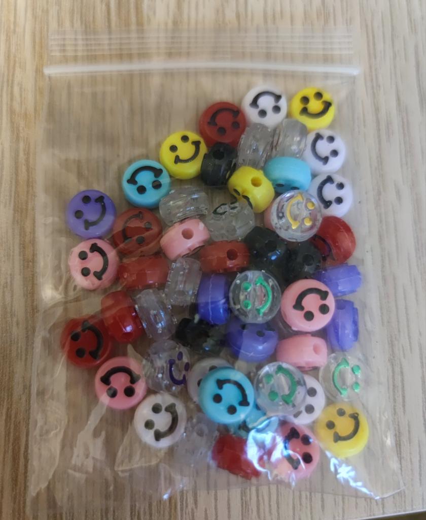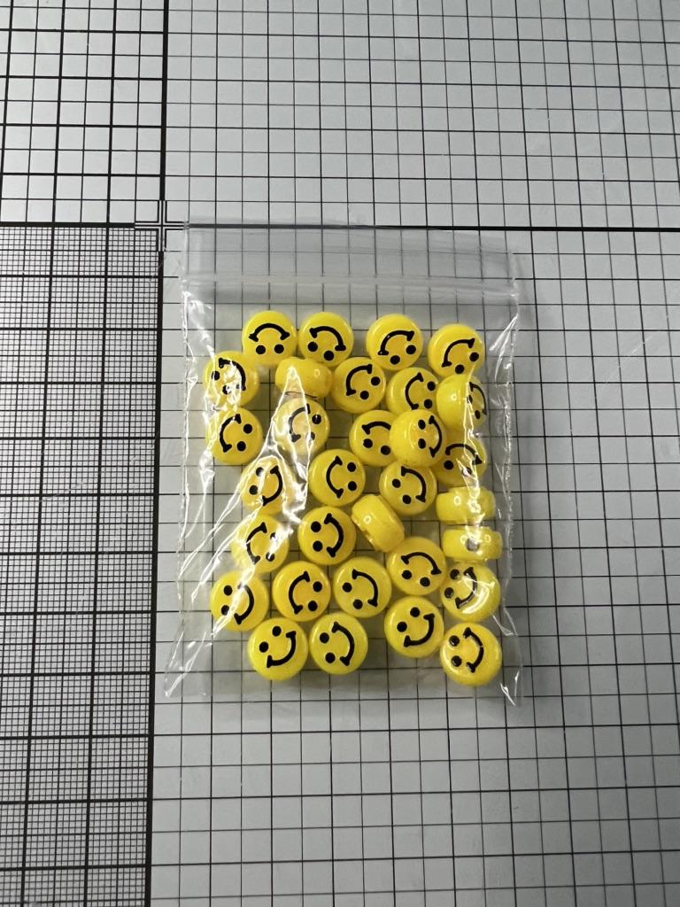 Niedliche smiley Perlen in guter Größe. Versand war wie angegeben. Gern wieder.