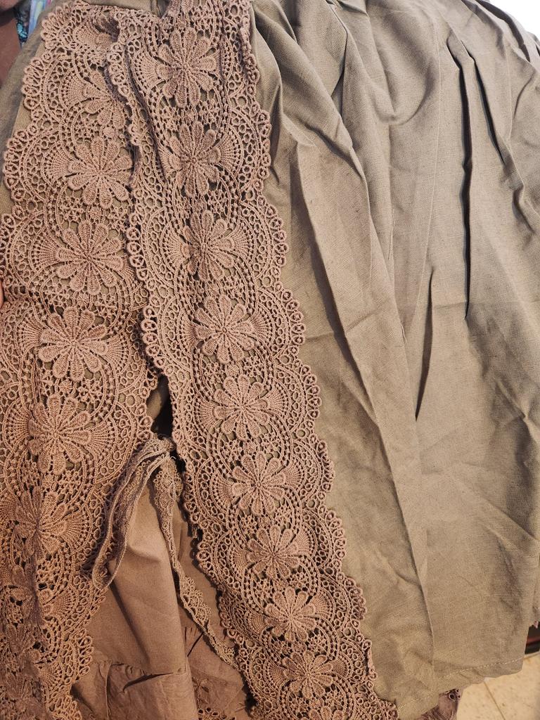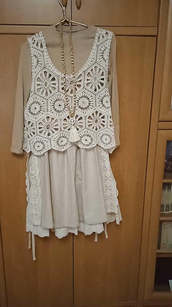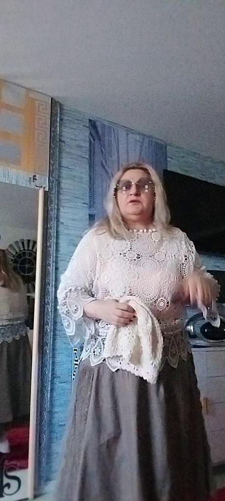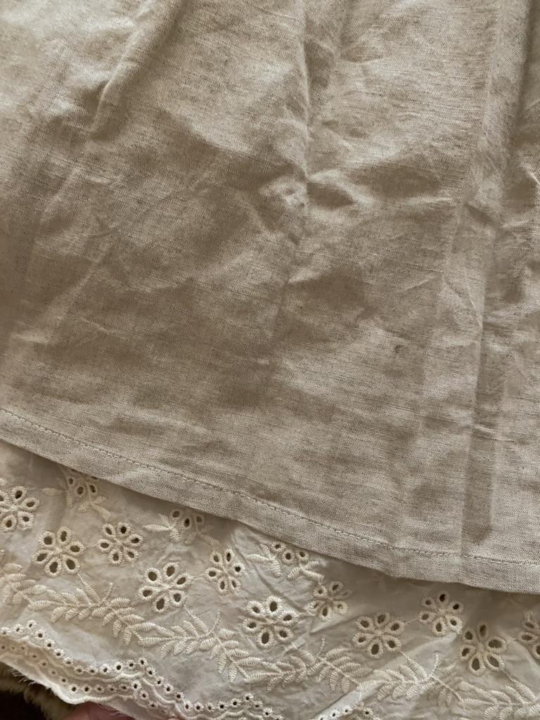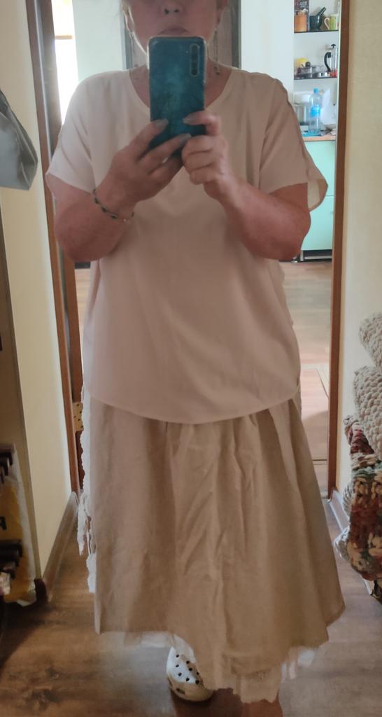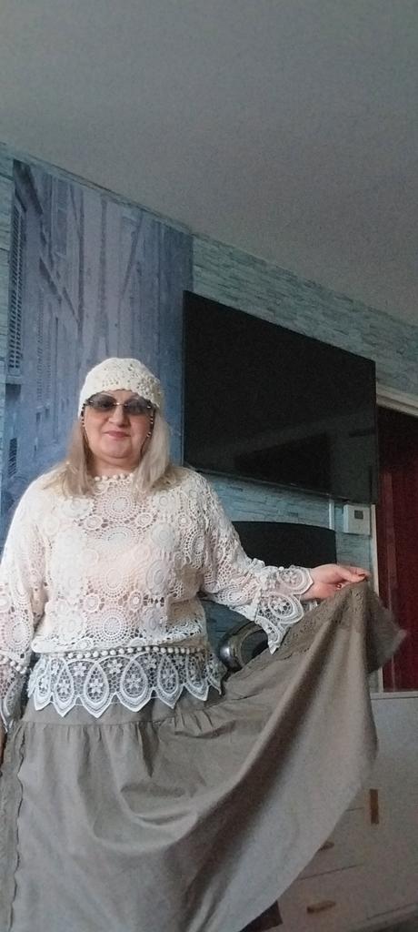 Super Rock. Noch besser als ich erwartet hatte. Der obere Rock ist aus Leinen, der untere aus Baumwolle mit Nähten. Baumwollspitze an den Seiten. Ich habe eine Taille von 90 cm. Der Rock hat mir gepasst. Sehr schön. Ich habe mich sofort verliebt.