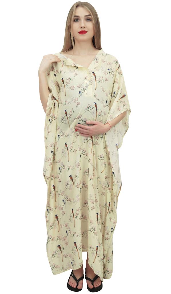 * Bimba introduces a new range of maternity kaftan, perfect for nursing mothers and pregnant women's. This is a beautiful floral & bird printed maternity kaftan with buttons on the front down to the waist and one side shoulder for easy nursing, also has slits at both hems to allow more leg freedom as needed. It comes with a belt which you can tie just under bust as per your suitability makes it comfortable kaftan, Making it a perfect gift for moms and to be moms. You can wear it while you are pregnant or after the baby comes.